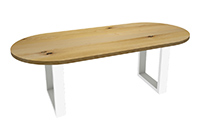 The Shoreline table's timeless style could easily fit in any dining room or office setting. The oval shape table top is made from solid rustic alder wood and the table legs are