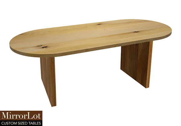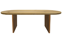 The Shoreline table's timeless style could easily fit in any dining room or office setting. The oval shape table top is made from solid rustic alder wood and the table legs are