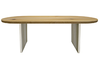 The Shoreline table's timeless style could easily fit in any dining room or office setting. The oval shape table top is made from solid rustic alder wood and the table legs are
