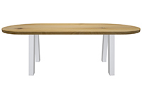 The Shoreline table's timeless style could easily fit in any dining room or office setting. The oval shape table top is made from solid rustic alder wood and the table legs are