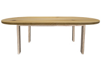 The Shoreline table's timeless style could easily fit in any dining room or office setting. The oval shape table top is made from solid rustic alder wood and the table legs are