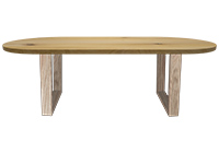 The Shoreline table's timeless style could easily fit in any dining room or office setting. The oval shape table top is made from solid rustic alder wood and the table legs are