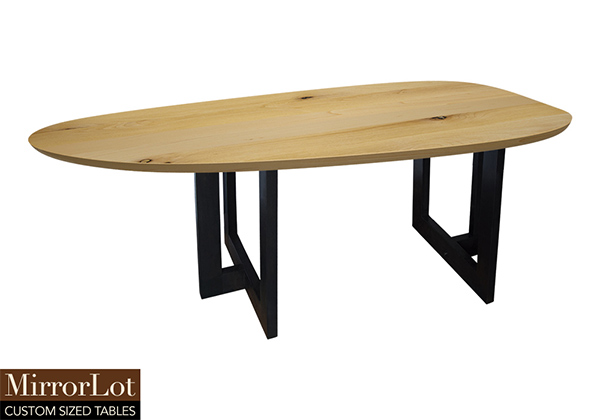 The Monroe table's timeless style could easily fit in any dining room or office setting. The beveled knife edge unique round shape table top is made from solid rustic alder wood and the table legs are
