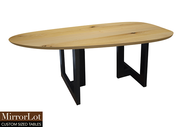 The Monroe table's timeless style could easily fit in any dining room or office setting. The beveled knife edge unique round shape table top is made from solid rustic alder wood and the table legs are