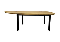 The Monroe table's timeless style could easily fit in any dining room or office setting. The beveled knife edge unique round shape table top is made from solid rustic alder wood and the table legs are