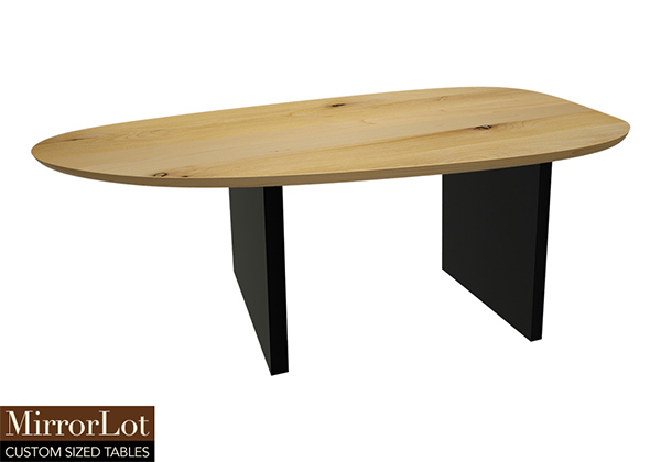 The Monroe table's timeless style could easily fit in any dining room or office setting. The beveled knife edge unique round shape table top is made from solid rustic alder wood and the table legs are