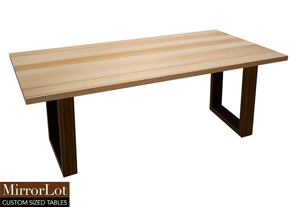 Wood & finish: Natural spanish cedar table top and bronze walnut stained table legs