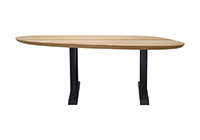 The Hardin table's timeless style could easily fit in any dining room or office setting. The beveled knife edge unique round shape table top is made from solid spanish cedar wood and the table legs are