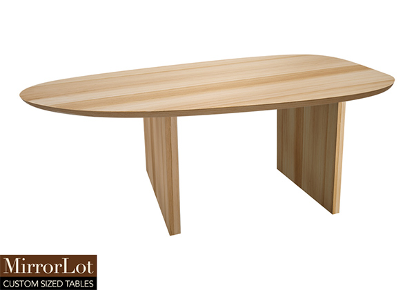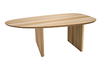 The Hardin table's timeless style could easily fit in any dining room or office setting. The beveled knife edge unique round shape table top is made from solid spanish cedar wood and the table legs are