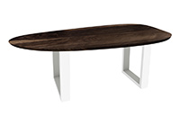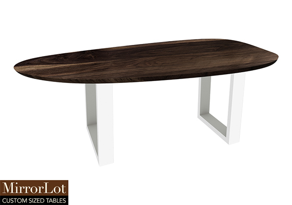 The Plano table's timeless style could easily fit in any dining room or office setting. The beveled knife edge unique round shape table top is made from solid american walnut wood and the table legs are