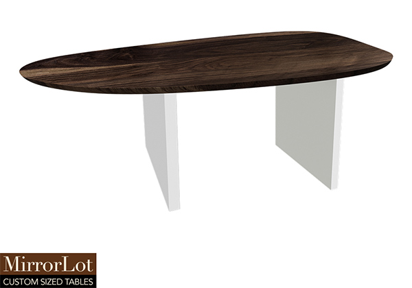The Plano table's timeless style could easily fit in any dining room or office setting. The beveled knife edge unique round shape table top is made from solid american walnut wood and the table legs are