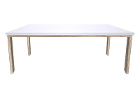 Wood & finish: White table top and natural red oak table legs