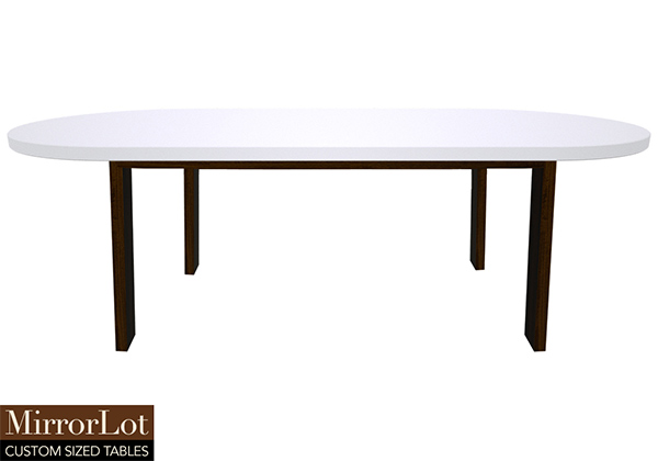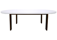The Cupertino table's timeless style could easily fit in any dining room or office setting. The oval shape table top is made from solid poplar wood and the table legs are