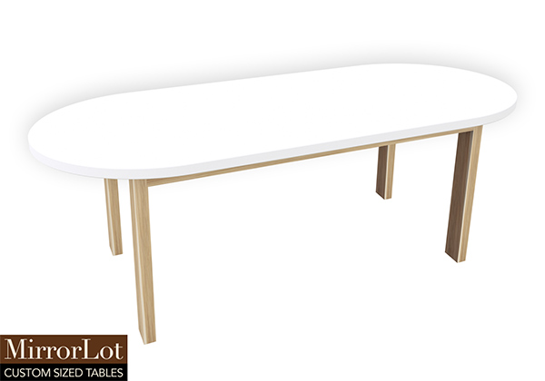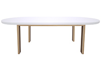The Cupertino table's timeless style could easily fit in any dining room or office setting. The oval shape table top is made from solid poplar wood and the table legs are