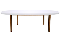 The Cupertino table's timeless style could easily fit in any dining room or office setting. The oval shape table top is made from solid poplar wood and the table legs are
