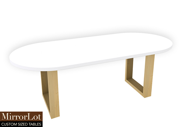 The Cupertino table's timeless style could easily fit in any dining room or office setting. The oval shape table top is made from solid poplar wood and the table legs are