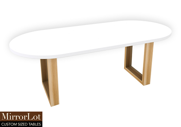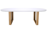 The Cupertino table's timeless style could easily fit in any dining room or office setting. The oval shape table top is made from solid poplar wood and the table legs are