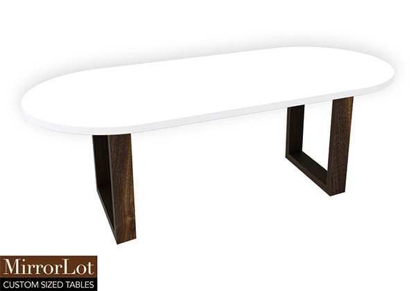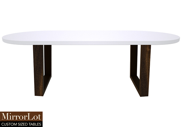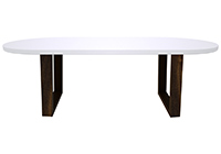 The Cupertino table's timeless style could easily fit in any dining room or office setting. The oval shape table top is made from solid poplar wood and the table legs are