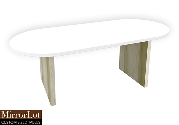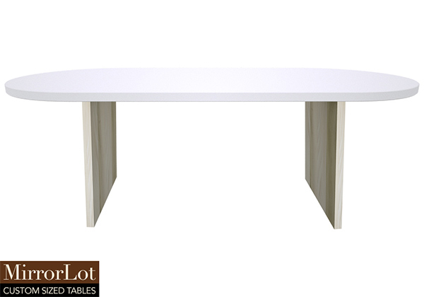 The Cupertino table's timeless style could easily fit in any dining room or office setting. The oval shape table top is made from solid poplar wood and the table legs are