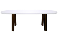 The Cupertino table's timeless style could easily fit in any dining room or office setting. The oval shape table top is made from solid poplar wood and the table legs are