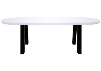 The Cupertino table's timeless style could easily fit in any dining room or office setting. The oval shape table top is made from solid poplar wood and the table legs are