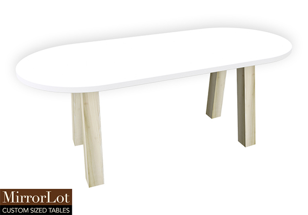 The Cupertino table's timeless style could easily fit in any dining room or office setting. The oval shape table top is made from solid poplar wood and the table legs are