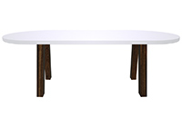 The Cupertino table's timeless style could easily fit in any dining room or office setting. The oval shape table top is made from solid poplar wood and the table legs are