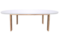The Cupertino table's timeless style could easily fit in any dining room or office setting. The oval shape table top is made from solid poplar wood and the table legs are