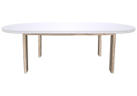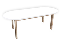 The Cupertino table's timeless style could easily fit in any dining room or office setting. The oval shape table top is made from solid poplar wood and the table legs are