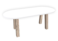 The Cupertino table's timeless style could easily fit in any dining room or office setting. The oval shape table top is made from solid poplar wood and the table legs are