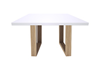 The Stockton table's timeless style could easily fit in any dining room or office setting. The square shape table top is made from solid poplar wood and the table legs are