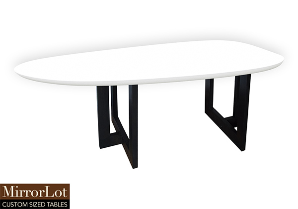 The Berkeley table's timeless style could easily fit in any dining room or office setting. The beveled knife edge unique round shape table top is made from solid poplar wood and the table legs are
