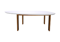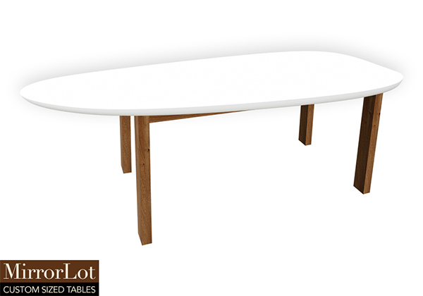 The Berkeley table's timeless style could easily fit in any dining room or office setting. The beveled knife edge unique round shape table top is made from solid poplar wood and the table legs are