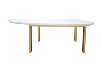 The Berkeley table's timeless style could easily fit in any dining room or office setting. The beveled knife edge unique round shape table top is made from solid poplar wood and the table legs are