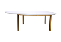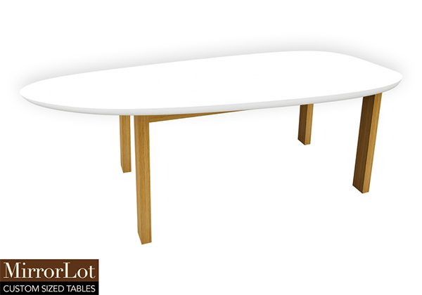 The Berkeley table's timeless style could easily fit in any dining room or office setting. The beveled knife edge unique round shape table top is made from solid poplar wood and the table legs are