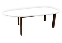 The Berkeley table's timeless style could easily fit in any dining room or office setting. The beveled knife edge unique round shape table top is made from solid poplar wood and the table legs are