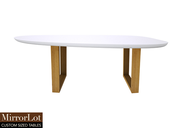 The Berkeley table's timeless style could easily fit in any dining room or office setting. The beveled knife edge unique round shape table top is made from solid poplar wood and the table legs are