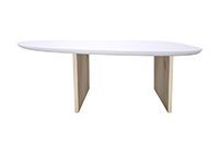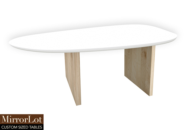 The Berkeley table's timeless style could easily fit in any dining room or office setting. The beveled knife edge unique round shape table top is made from solid poplar wood and the table legs are