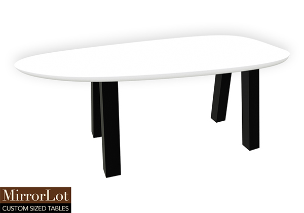 The Berkeley table's timeless style could easily fit in any dining room or office setting. The beveled knife edge unique round shape table top is made from solid poplar wood and the table legs are