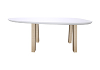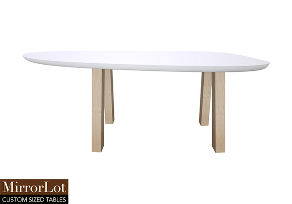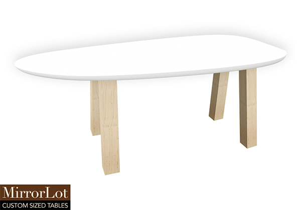 The Berkeley table's timeless style could easily fit in any dining room or office setting. The beveled knife edge unique round shape table top is made from solid poplar wood and the table legs are