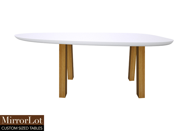 The Berkeley table's timeless style could easily fit in any dining room or office setting. The beveled knife edge unique round shape table top is made from solid poplar wood and the table legs are
