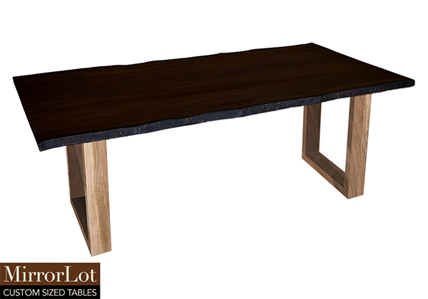 Wood & finish: Bronze walnut stained with dark edge table top and natural cherry table legs