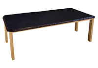 Wood & finish: Black walnut stained with bronze edge table top and natural spanish cedar table legs