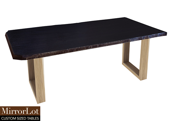 Wood & finish: Black walnut stained with bronze edge table top and natural pecan hickory table legs
