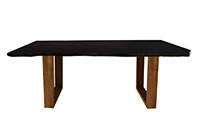 Wood & finish: Black walnut stained with bronze edge table top and natural african mahogany table legs