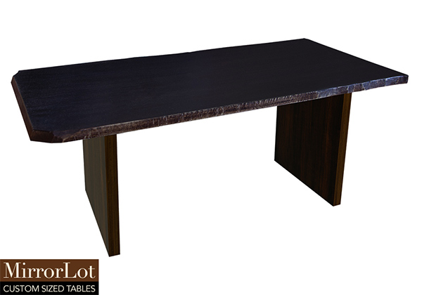 Wood & finish: Black walnut stained with bronze edge table top and bronze walnut stained table legs