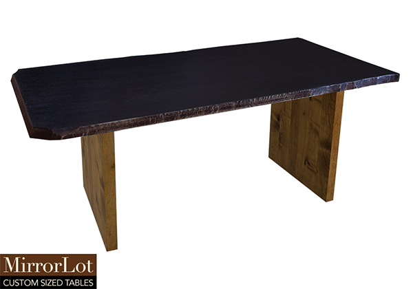 Wood & finish: Black walnut stained with bronze edge table top and dark natural supreme alder table legs