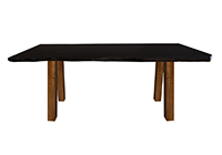 Wood & finish: Black walnut stained with bronze edge table top and natural african mahogany table legs