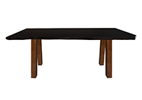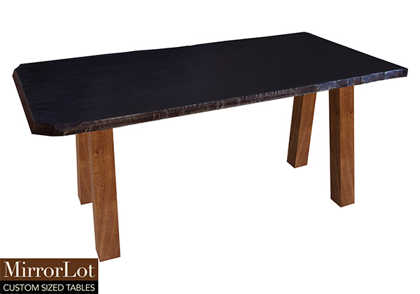 Wood & finish: Black walnut stained with bronze edge table top and natural african mahogany table legs
