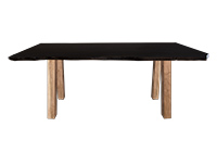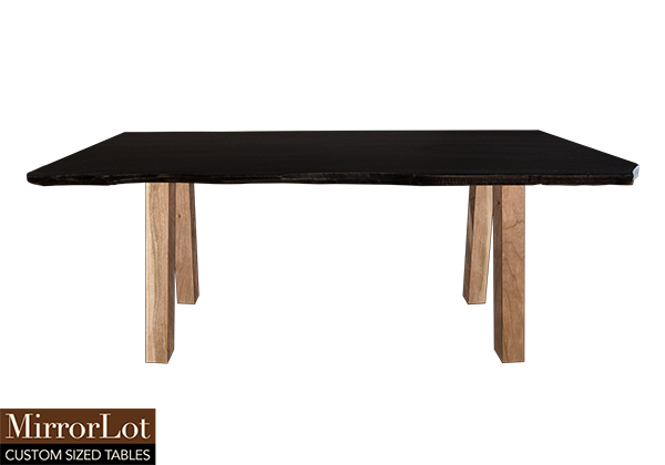 Wood & finish: Black walnut stained with bronze edge table top and natural cherry table legs